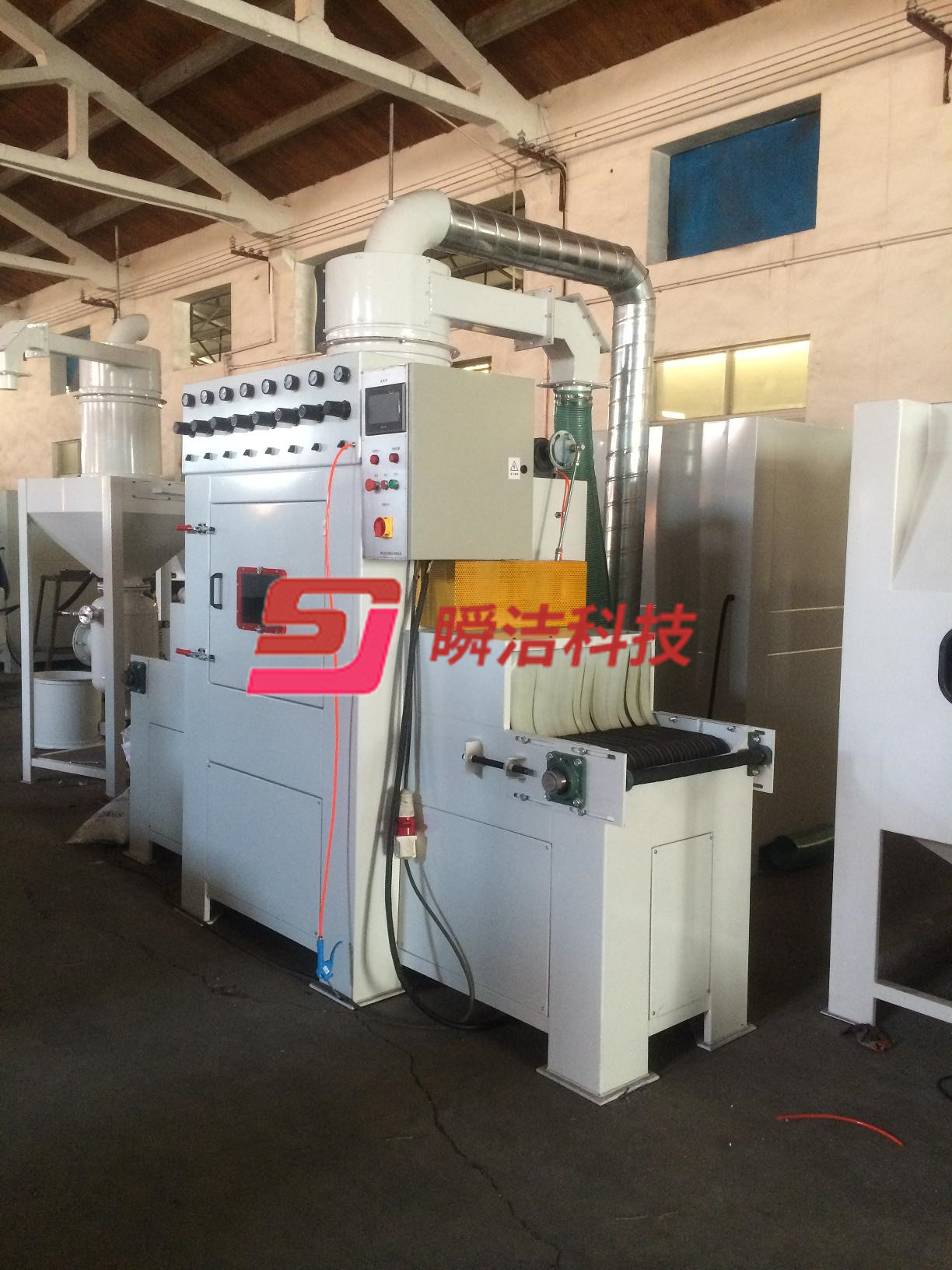 2、操作時(shí)將工件放在輸送帶上、噴砂作業(yè)自動(dòng)完成,十分簡(jiǎn)單方更。