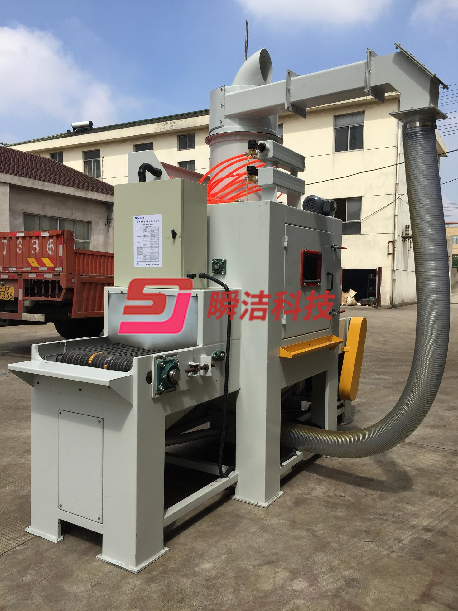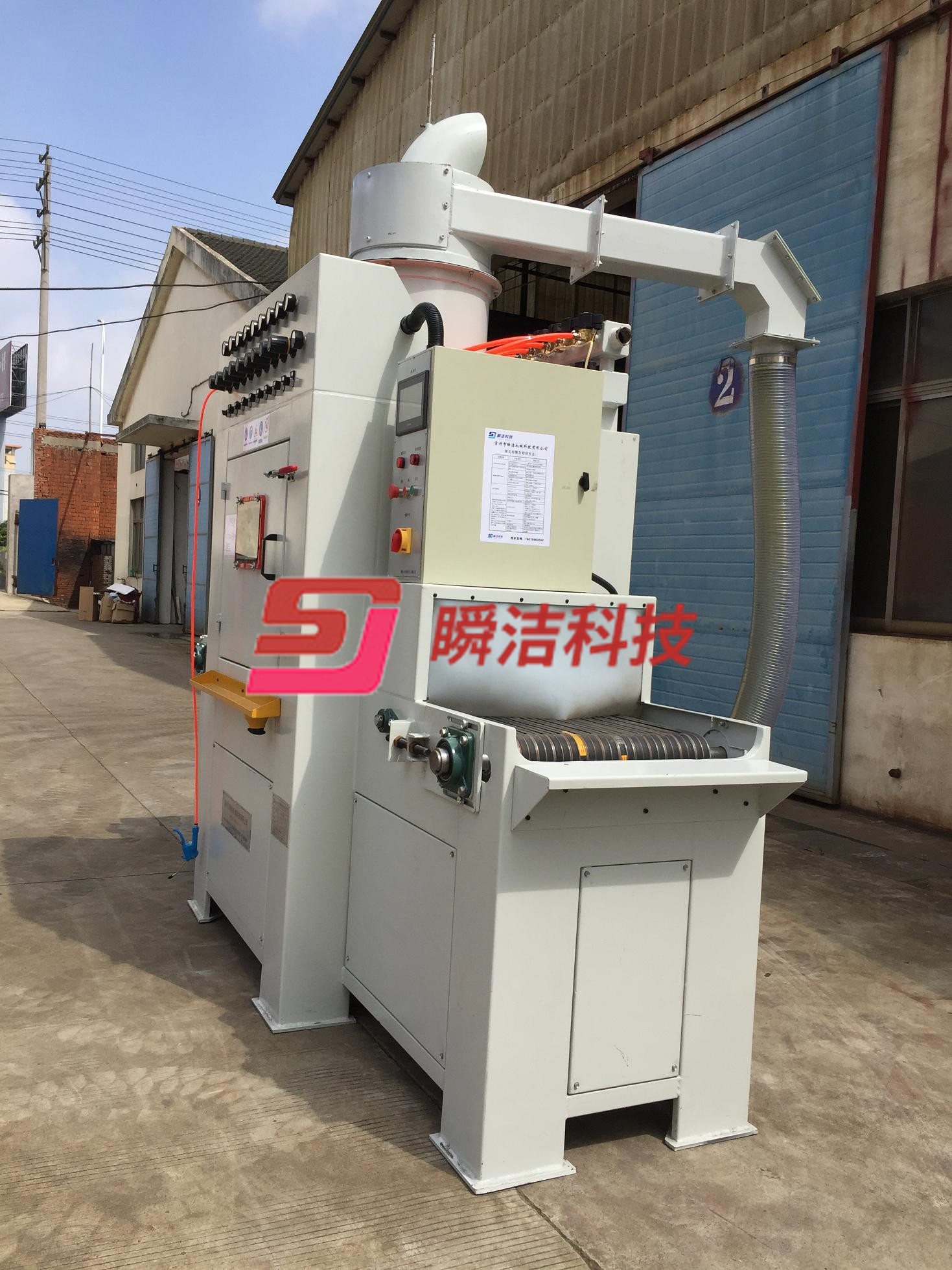 2、操作時將工件放在輸送帶上、噴砂作業(yè)自動完成,十分簡單方更。