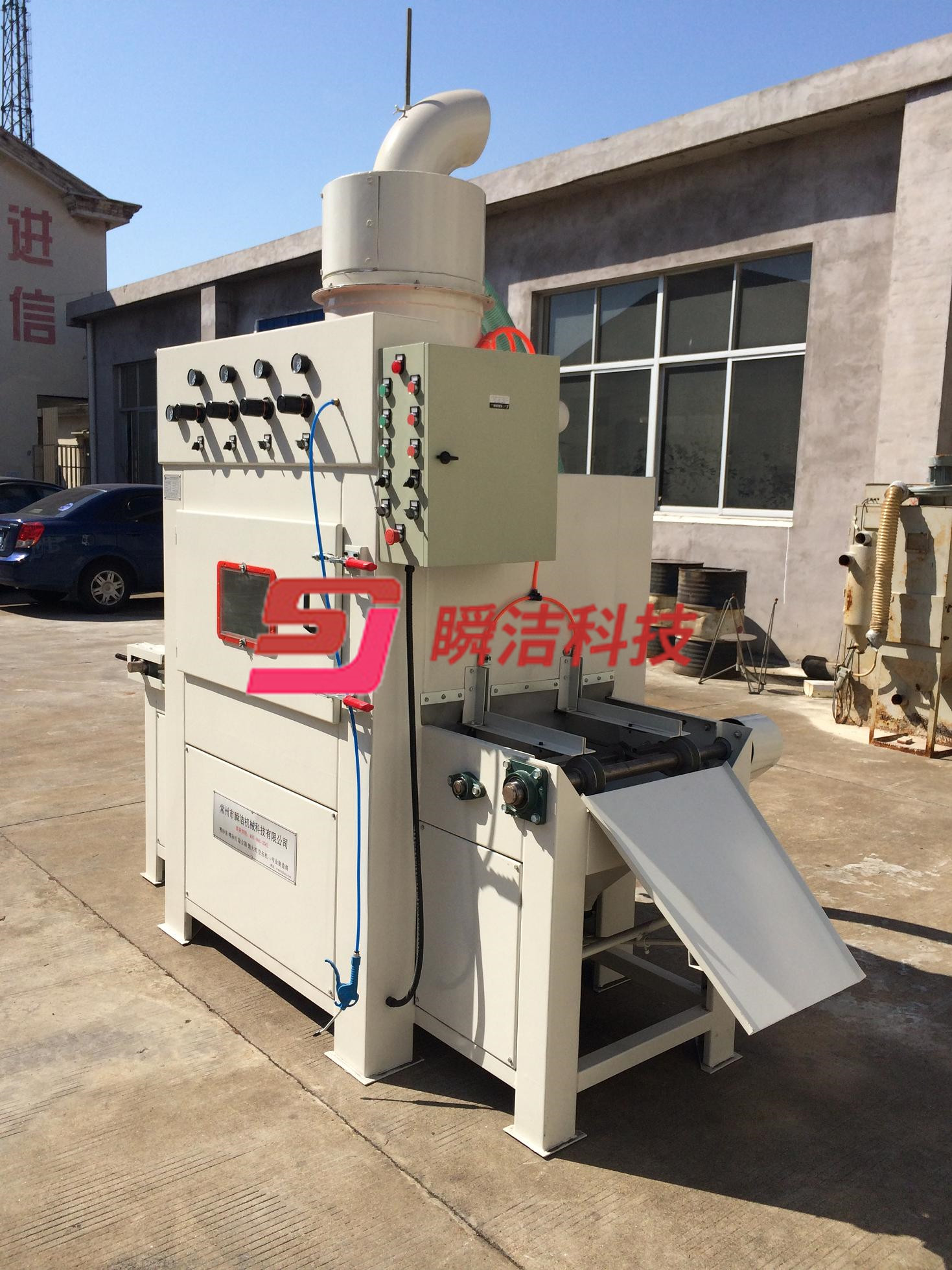 2、操作時(shí)將工件放在輸送帶上、噴砂作業(yè)自動(dòng)完成,十分簡單方更。