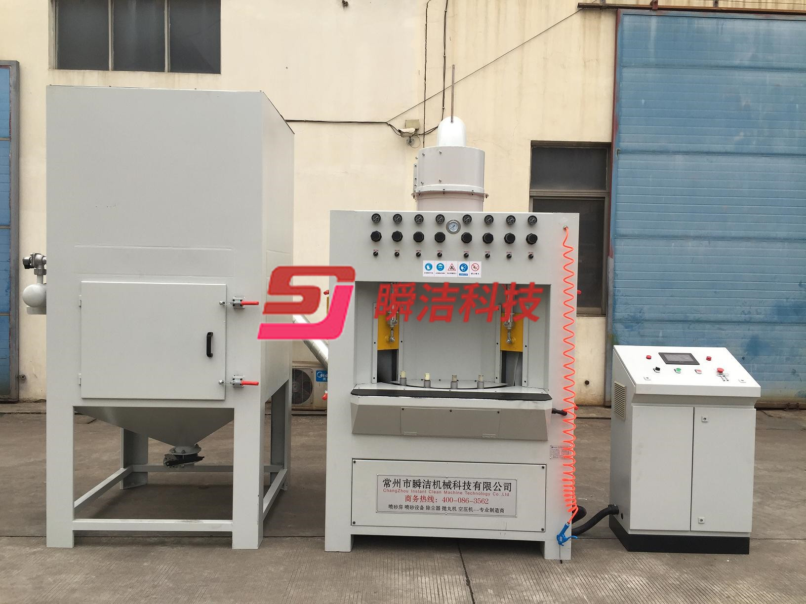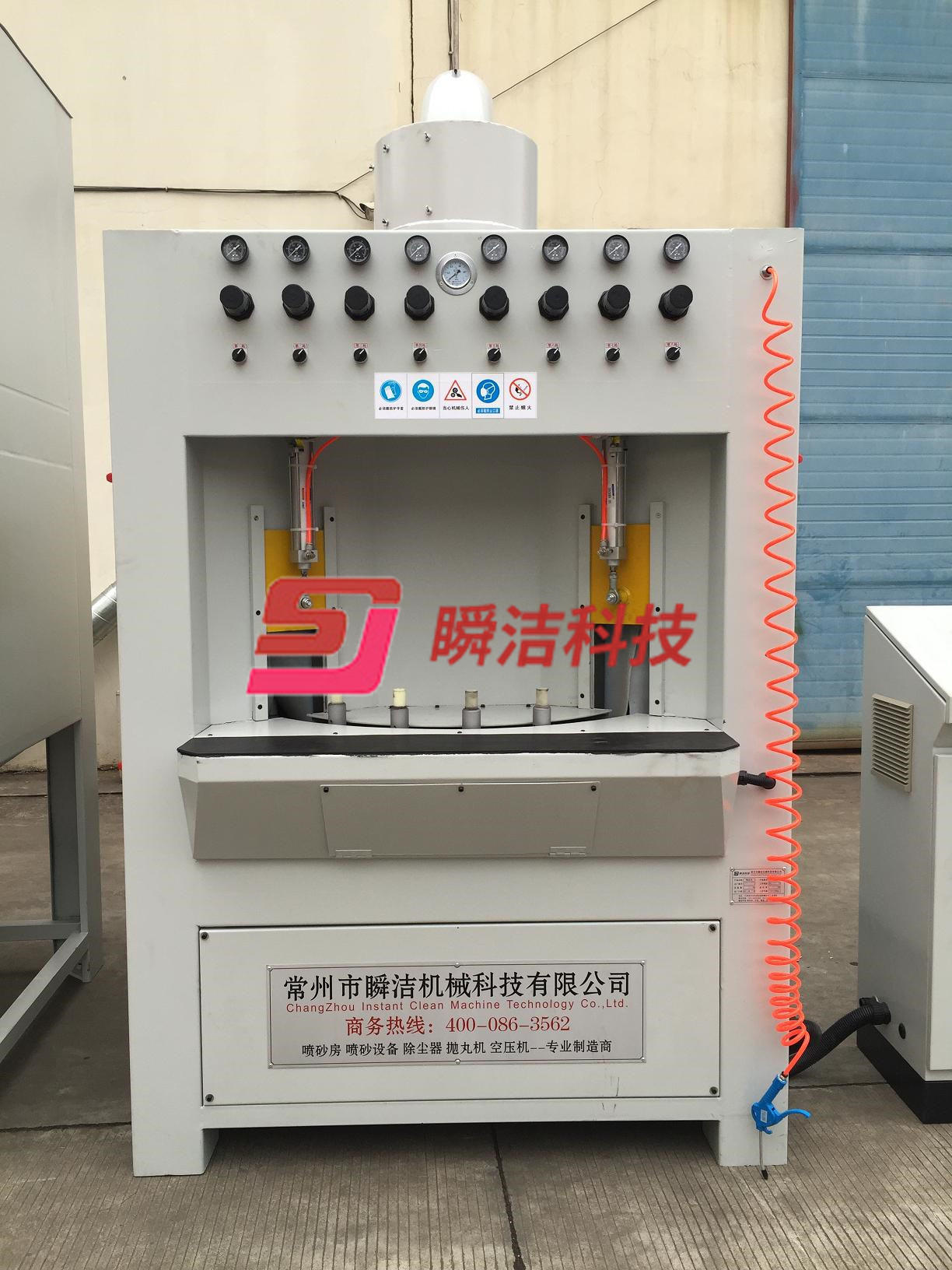 1、 本設(shè)備可采用6-12噴槍設(shè)計,噴槍設(shè)置上下兩組,噴砂上下擺動,噴槍360度可調(diào),保證產(chǎn)品表面均勻噴砂,無死角,成品率100%。