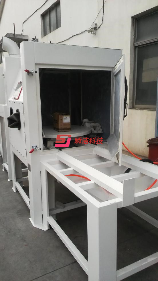 3、配備活動(dòng)臺(tái)車(chē),和轉(zhuǎn)盤(pán),操作時(shí)將工件放在轉(zhuǎn)盤(pán)上,然后推入機(jī)內(nèi)即可噴砂作業(yè),操作簡(jiǎn)單省力。
