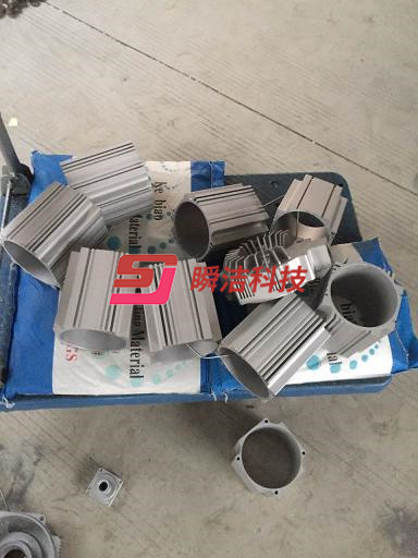 3.我公司將線材拋丸機的箱式外置拋丸器清理室,改為內(nèi)置式拋丸器清理室,彈丸近距離打擊在線材工件上,大大增加了清理除銹效率、效果。四臺拋丸器兩兩間隔180度布置,增強了彈丸清理的線材的均勻性和全包圍性,解決了工件在清理過程中出現(xiàn)“陰陽面”問題。