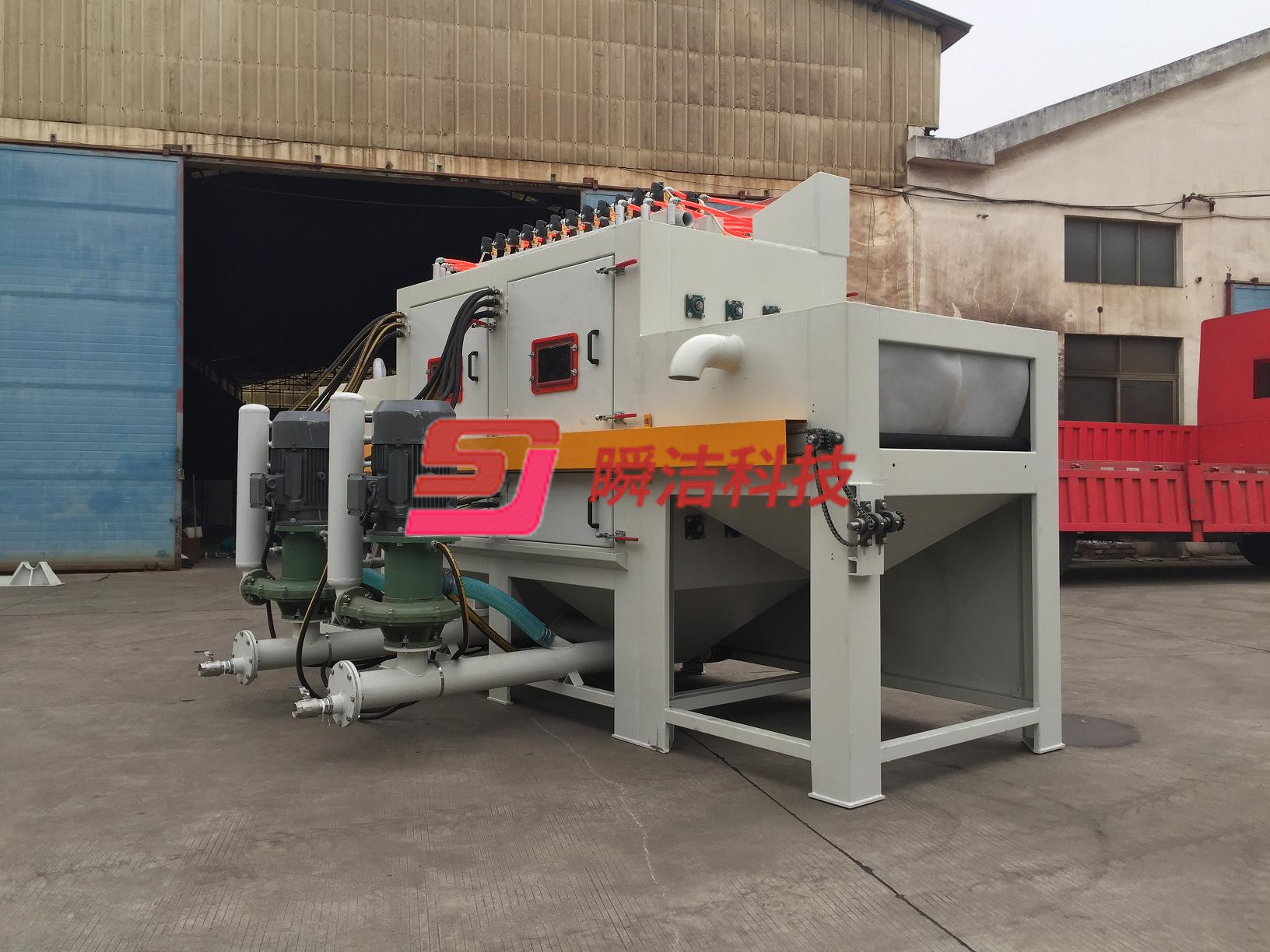 1、 本設(shè)備為24槍液體輸送式自動噴砂設(shè)備,自動噴砂設(shè)置上下同時完成噴砂,表面潔凈均勻,噴砂效率快,成品率高。